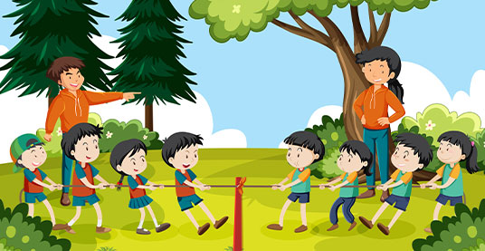 Competitions like racing, balancing, and skipping.